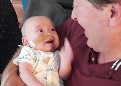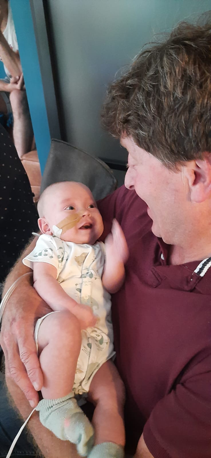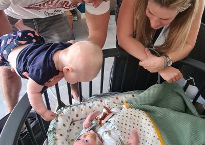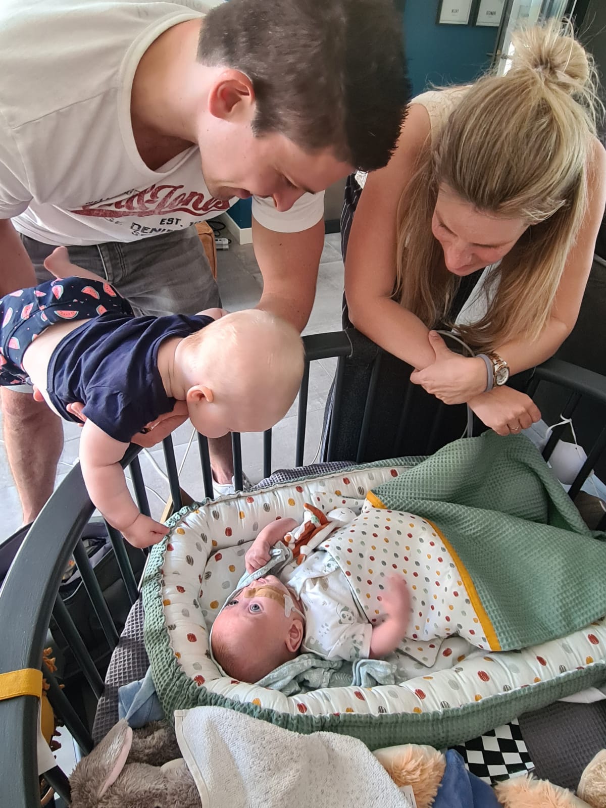 Om me niet te veel te plagen met de pleisters de hele tijd laten papa en mama de pleisters zitten en halen ze alleen het slangetje even uit mijn neus. Dat ziet er een beetje gek uit, maar dat geeft niks.
