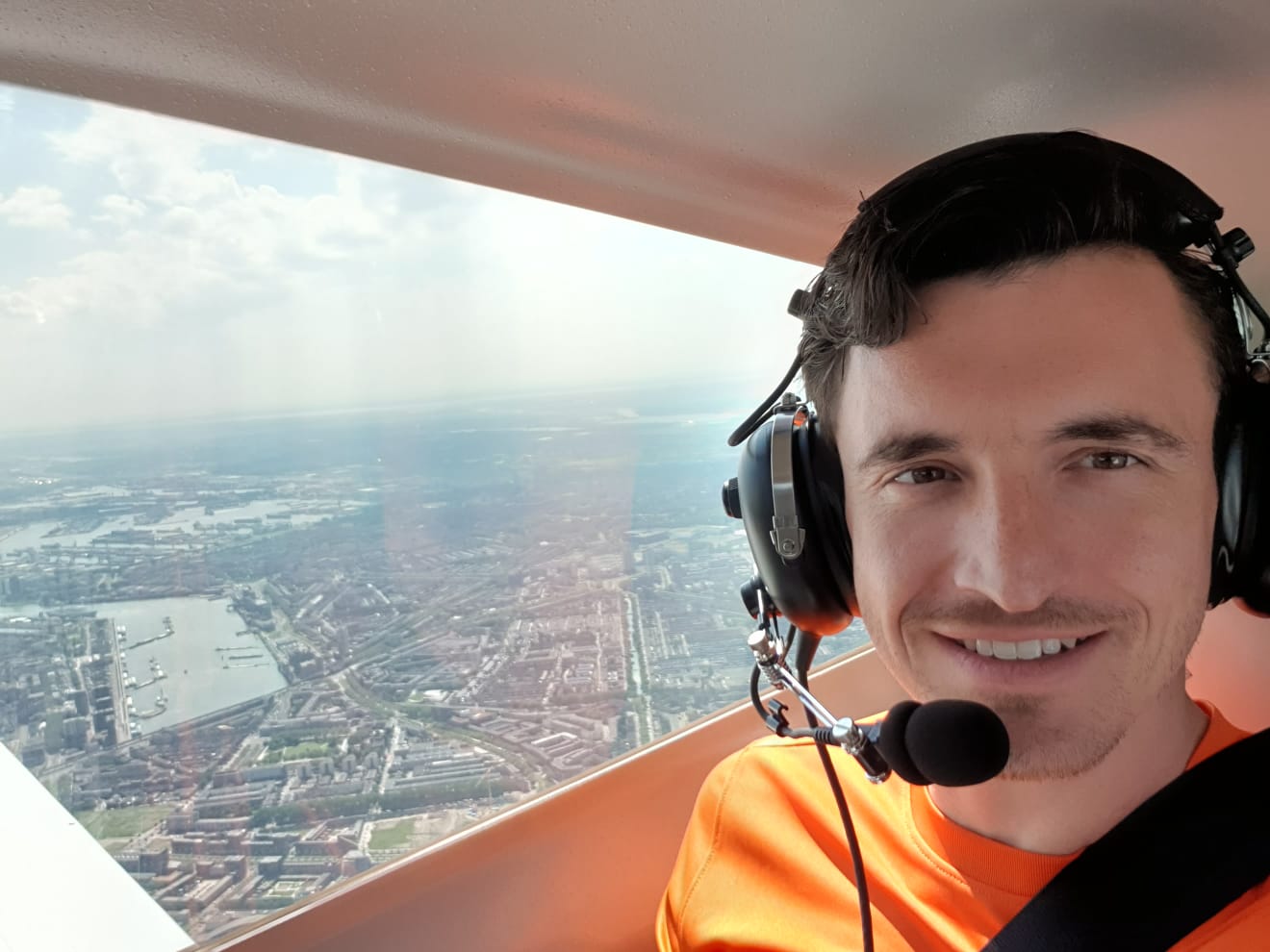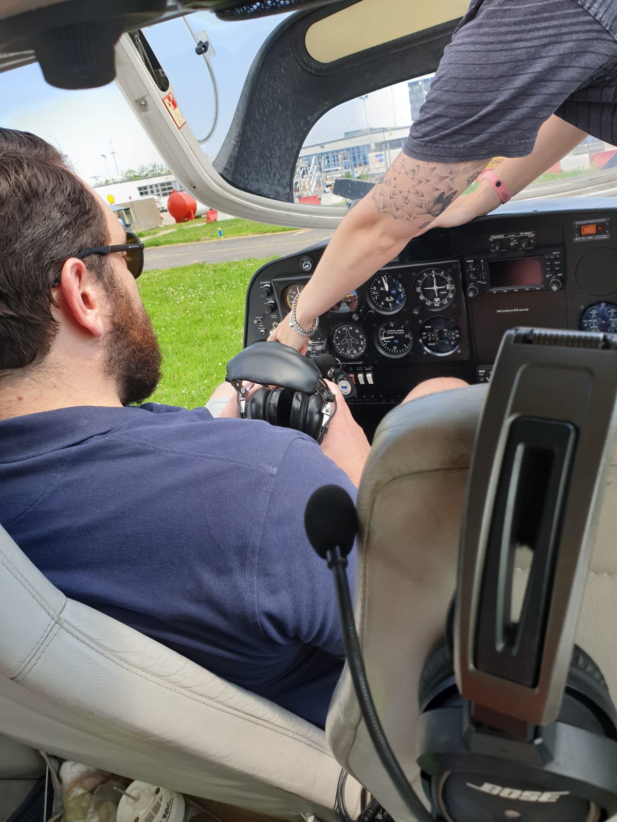 Afgelopen weekend was het feest! Papa wordt deze week 33 (“3x 11, de gek zelf!” – voor de vastelaovendsvierders onder ons). Mama had samen met de familie een super leuk cadeau geregeld – papa mocht zélf vliegen in een écht vliegtuig. WOW! Papa wist van niks, alleen dat ie om 11.30u klaar moest staan. Om hem om de tuin te leiden had ze zijn tennistas klaargezet. Huh?!