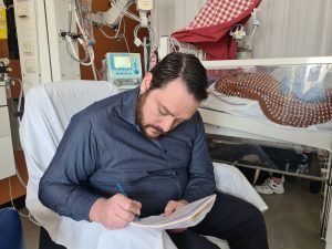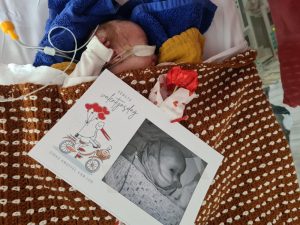 ‘s Avonds kwamen papa en mama gezellig weer, nu mocht ik met mama knuffelen. Toen ik ging eten had ik het even moeilijk met ademhalen, maar met wat meer zuurstof ging het weer prima. Het is dat de monitor het aangaf, want ik voelde me helemaal relaxed en lag lekker knock-out bij mama. Sorry nog he dat ik op je heb gekwijld mam!