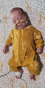 Vrijdagochtend waren papa en mama er weer vroeg. De logopediste was bezig bij andere ouders maar ging proberen rond de lunch nog even te komen. Ik had mijn voeding al gehad, gewoon via de sonde want ze hadden veel met me ondernomen ‘s ochtends en ik was er lekker moe van. Ik mocht knuffelen met papa en heb wel 3u bij hem gelegen! Toen ik een schone luier had gekregen kwam de zuster even kijken of ze dacht dat ik een flesje zou kunnen drinken. Ik lag wel flink te sabbelen op mijn speen, maar had mijn ogen lekker dicht en ze besloten me niet te plagen. Goed gedaan! De logopediste had toch geen tijd helaas, maar maandag komt ze even kijken. De zusters hadden ‘s ochtends een leuke foto van mij gemaakt, omdat ze de slangetjes hadden vervangen even helemaal zonder kabels.