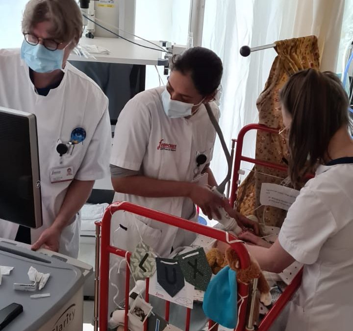 Maandag kwamen papa en mama langs, wat was het druk bij mij op de zaal! Er liepen allemaal mannen rond met een Philips trui aan die de schermen kwamen vervangen waarop de zusters kunnen zien hoe het met mijn hartslag en ademhaling gaat. Die zijn nu nieuw, ze zien er mooi uit en de zusters kunnen meer grafieken bekijken, maar wat een kabaal zeg. Op onze zaal gaat nu ook een alarm piepen als er op een ander zaaltje een kindje een afwijkende waarde heeft, de hele dag piepjes dus… Het systeem is alvast voorbereid voor als er in de nieuwbouw aparte kamers komen voor elk kindje. Dat lijkt me fijn zeg, een eigen kamer. Voor nu geniet ik stiekem toch ook wel van alle aandacht en bezigheid om me heen, maar die piepjes…