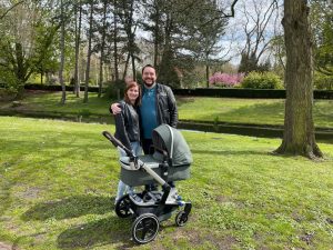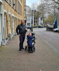 Toen alles georganiseerd was en de koffie (en vlaai!!) op was gingen we lekker wandelen. Even verkennen in wat voor leuke buurt ik eigenlijk woon! Ik zag veel groen en allerlei verschillende huizen, ik vind die van ons het mooist! We gingen nog even een ijsje halen en papa wilde graag koffie zodat ie dat in de ‘cup holder’ kon zetten die hij zo graag op de kinderwagen wou. Check! 🙂