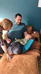 We zijn ‘s nachts een paar keer heeeeeeel even wakker geweest, ik vroeg papa toen om mijn speen, hij snapte mij gelukkig, gaf mijn speentje en we sliepen weer lekker verder. Om 6u lagen papa en ik nog in diepe slaap, maar mama maakte me wakker en gaf me in de babykamer een schone luier en de fles. Ze had alleen even niet nagedacht over dat daar geen stoel stond dus daar zat ze dan op de grond met mij op schoot, gezellig wel! Ik mocht weer terug naar bed en mama ook. Om 8u kreeg ik mijn medicijnen, die had mama al klaargelegd en papa ging ze geven. Mijn flesje van 9u kreeg ik ook van papa en we hebben lekker nog even in bed gelegen met z’n 3tjes, we hadden allemaal ontbijt op bed!