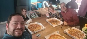 Samen met opa en oma hebben we nog een lekkere pizza gegeten, ik mocht erbij aan tafel in mijn eigen stoel, wat gezellig! Ik heb de hele tijd naar mama gekeken en viel daarna heerlijk in slaap.